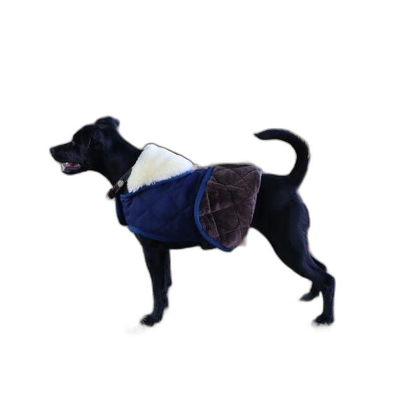 The premier product Kentucky Dogwear, already worn by thousands of dogs worldwide. Artificial rabbit skin lining and 160G padding for added warmth and comfort. Sturdy outer fabric in 1000D high-tenacity polyester Artificial sheepskin on neck Hook-and-loop fastenings on chest and belly Features This dog coat was the premier product Kentucky Dogwear. Right from the start, the product was a great success and is now worn by thousands of dogs worldwide. Thanks to the durable fabrics and timeless design, your dog will enjoy this coat for many winters to come. Fabrics and materials The original dog coat has a 160g padding. The coat features an artificial rabbit skin lining for added comfort. The lining creates tiny air pockets that trap and retain the dog's body heat. The soft lining also polishes the dog's hair for a shiny coat. A small hood is fitted at the neck. The hood is made of artificial sheepskin for comfort and warmth. The outer fabric is made from 1000D high-tenacity polyester to guarantee tear resistance. Diamond quilting ensures a classy and timeless look. Shape and size The dog coat can be closed with hook-and-loop fasteners on the chest and belly. The fastenings are completed by artificial leather parts. The hood can be folded over the neck for extra coverage. Care instructions The original dog coat has been specially designed to withstand machine washing at 30°. We recommend closing the hook-and-loop fastener before putting the coat in the washing machine. We do not recommend tumble-drying. Dimensions: 46 = 44/54 cm, 58 = 50/60 cm, 62 = 55/62 cm, 71 = 60/68 cm, DH = 40 cm, L = 51/59 cm, M = 44/50 cm, S = 34/38 cm, SM = 39/43 cm